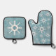 Southwest Winter Geometric Snowflakes Blue Oven Mitt & Pot Holder Set