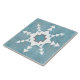 Inspired by the rocks, design elements and petroglyphs distinctive to the artist's surroundings in the southwest, this original artwork features a turquoise and silver grey background with geometric snowflakes, pine tree borders and deer drawings based on actual petroglyphs found in Arizona and Utah.