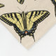 This artwork features the black and yellow Western Swallowtail butterfly, one of the most beautiful large butterflies in the southwest. The original art is based on photographs the artist took in her own butterfly-friendly garden in Arizona. This design features the butterfly art in an all-over pattern on a background of beige with flecks of red and blue.