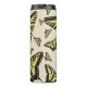 This artwork features the black and yellow Western Swallowtail butterfly, one of the most beautiful large butterflies in the southwest. The original art is based on photographs the artist took in her own butterfly-friendly garden in Arizona. This design features the butterfly art in an all-over pattern on a background of beige with flecks of red and blue.