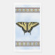 This design is of a black and yellow Western Swallowtail butterfly, one of the most beautiful large butterflies in the world, floating on a blue sky with puffy white couds. Bordered with southwest style geometric butterfly symbols. My original painting is based on photographs I took in my own butterfly-friendly garden in the Southwest.