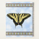 Personalise with your own expression, text or name on this design of a black and yellow Western Swallowtail butterfly, one of the most beautiful large butterflies in the world, floating on a blue sky with puffy white couds. Bordered with southwest style geometric butterfly symbols. My original painting is based on photographs I took in my own butterfly-friendly garden in the Southwest.