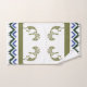 Southwest Style Arizona Kokopelli Bathroom Towels. Kokopelli bathroom towel set. Vivid green, white and blue colour combination that you can customise background colours to match your decor. Kokopelli Native American Indian cultures. Attributed to ancient aliens or tribal art and inspired by cave and rock drawings. Customise your Southwestern Style Native American towel set colours and styles. Great gift idea.