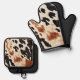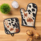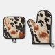 Southwestern Brown Cream Black Cowhide Oven Mitt & Pot Holder Set