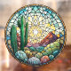 Transform your windows into a stunning work of art with our stained glass cactus window cling. Featuring a vibrant desert scene complete with a radiant sun, majestic mountains, and serene cacti, this round glass decal emulates the beauty of a real stained glass panel with the ease of a removable suncatcher. Perfect for adding a splash of colour to any room and easy to apply to any glass surface without the use of adhesives.