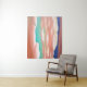 Tapestry in a boho / minimalist style illustration of a Southwestern desert scene under a dawn sky with salmon pink clouds