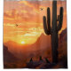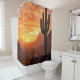 Southwestern Photography the bird quail at sunrise in the desert landscape bathroom shower curtain. Arizona Desert Saguaro Cactus vibrant clouds in the landscape, and desert. Animals basking in the light of the sun. Desert sunset home bathroom decor art. Customise for your home or office decor taste. Southwestern photography mountain desert striking photography. Desert of the southwest landscape.