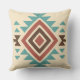 A Southwestern-style geometric pattern featuring layered diamond shapes in warm terracotta, deep brown, and cool turquoise tones. The distressed texture gives it a vintage feel, while the symmetrical layout adds a clean and modern touch.