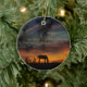 A beautiful silhouette horse in a southwestern sunrise with Heritage oak trees. A beautiful horse Christmas ornament.