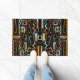 Doormat printed with Southwestern Inspired Scratch Art Mirrored Image Repeat Patterned artwork design and products collection by TheFabricSeal at Zazzle. Mirrored image repeating pattern with Southwestern desert and American Indian art inspired color pallet of turquoise blue and green, Indian red, burgundy, purple, gold, orange, golden orange, baby blue, sky blue, cream, beige and brown. There are many Southwest inspired designs in the store. Please, check them out.
