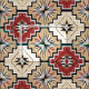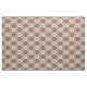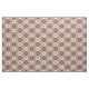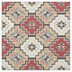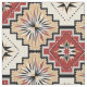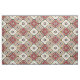 Burgundy, tan, black and white, this southwestern style design has a mirrored symmetry and complex geometric design similar to traditional southwestern blankets.