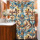 Southwestern Style Symmetrical Motif Tan Turquoise Shower Curtain