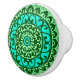 Knob in a Southwestern / Aztec inspired batik textile design in a sun dial / mandala pattern - light lime green and emerald green, accented with turquoise / peacock