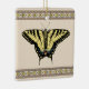 Bordered with southwest style geometric butterfly symbols in yellow, red, blue and black reflecting the patches of colour on the wings of the Swallowtail.