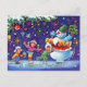 Soviet Ice Skating Kids with Happy Snowman Postcard