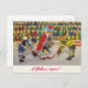 Soviet postcard with Santa Claus and hockey