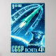 Artist's image of a rocket and dog from a Soviet postage stamp used in 1961, commemorating the flight of a dog called Chernushka (Blackie) aboard Sputnik 9 on March 9, 1961.