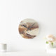 The clock did not take as long to arrive as I thought it might and was extremely well packaged. I didn't do the measurements so I didn't realize it is a little smaller than the average clock but that does not matter (just make sure you check if that's important to you).It is really nifty! It seems very solid and well made not flimsy at all. It has been going well and has kept good time in its few weeks on my wall. Nice product. Gets noticed too! Nicer in real life than the picture but true to the picture