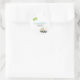 The sticker is made on wonderful paper and had no problem sticking to the bag that I purchased to put it on. I wanted to find a design that would be cute for the bride and groom and this one fit the bill as it has cute "bees" buzzing around and the wedding was taking place in a town called "Bee Cave". The packaging was great and protected the stickers. The website is easy to navigate and there are so many color choices. I had no problem finding a color that the bride was using on everything else selected. The design was adorable and there were many to choose from. You can make the figure as larger or smaller and you can place the photo and writting whereever you want to in the sticker. The printing is fabulous..better than expected.