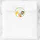 The sticker is made on wonderful paper and had no problem sticking to the bag that I purchased to put it on. I wanted to find a design that would be cute for the bride and groom and this one fit the bill as it has cute "bees" buzzing around and the wedding was taking place in a town called "Bee Cave". The packaging was great and protected the stickers. The website is easy to navigate and there are so many color choices. I had no problem finding a color that the bride was using on everything else selected. The design was adorable and there were many to choose from. You can make the figure as larger or smaller and you can place the photo and writting whereever you want to in the sticker. The printing is fabulous..better than expected.