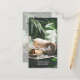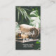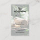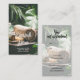 A stylish spa business card with a transparent white frame design on the front and more details on the back features a design of flowers, leaves, oil, and towels. Personalise this business card to be uniquely yours.