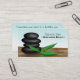 Business cards with a peaceful illustration of spa rocks and bamboo leaves on a bamboo table for your spa and relaxation resort or local business.