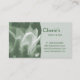 Spa - Salon Manicure Business Card showing hands and nails with tulip flower in soft muted green shades great for any aesthetics company, professional, spa, masseuse, massage therapy, salon or beauty professional.