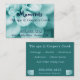 Peaceful colours, only 2 different fonts used so card doesn't look busy. Three styles used from one font to separate different types of information.