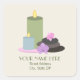 An address label sticker featuring an illustration of two candles, spa stones, and orchids. Personalise the green text with your name and address. Look for matching items at Jill's Paperie.