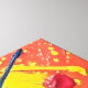 This vibrant digital artwork by Otis Porritt captures a striking figure encased in an astronaut's helmet, rendered with dynamic, impasto-like strokes. The subject's intense blue eyes pierce through a face defined by bold yellow and red hues, framed by electric blue hair. A stark black outline accentuates the features, creating a powerful pop art aesthetic. The background explodes with a chaotic yet colorful splatter pattern, contrasting with the figure's focused gaze and the sleek lines of the space gear.