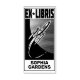 An Ex Libris design with a woodcut/ linocut style motif depicting a rocket orbiting a planet. Inspired by Soviet space exploration imagery from the 50s and 60s