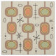 This atomic era styled mid century modern abstract art has circles, lines and sputnik starbursts. For lovers of midcentury kitsch designs. Multicolored and colourful with light beige, brown, orange and green.