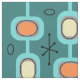 This atomic era styled mid century modern abstract art has circles, lines and sputnik starbursts. For lovers of midcentury kitsch designs. Multicolored and colourful with teal, turquoise, orange and yellow.