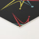 This yoga mat features a Mid Century Space Age atomic inspired motif interspersed with random dots in a colourful pattern. All four colours and the background may be edited for a custom look. Monogram text is easily personalised.