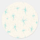 This Space Age Turquoise Starbursts Round Stickers pattern features blue starbursts on a creamy background with gold coloured speckles. Inspired by a classic mid century modern dish pattern, this design has an authentic vintage flair. The retro kitschy goodness will make you feel like you’ve stumbled across a flea market treasure. This pattern will be equally at home in a New York City penthouse apartment or an atomic Palm Springs house. Let this minimalist vintage pattern inspire you!