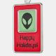 This red and green Christmas ornament, featuring a bold black space alien head alongside the cheerful greeting "Happy Holidays," is the ultimate fusion of holiday spirit and extraterrestrial intrigue. Whether you're hosting a UFO-themed holiday party, decorating your home with a unique twist, or simply looking to give a one-of-a-kind gift, this ornament is sure to spark conversation and delight any fan of science fiction, ufology, or extraterrestrial life. Its striking design combines the festive colours of red and green with a mysterious alien motif, offering a playful and quirky addition to your holiday decorations. For those captivated by UFOs, flying saucers, and the mysteries of the universe, this ornament serves as a perfect reminder of the endless possibilities beyond our world.