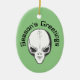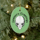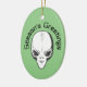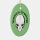 Made of high-quality ceramic, this ornament has a durable and elegant finish that will last for many holiday seasons to come. Its oval shape gives it a unique appearance, setting it apart from traditional round ornaments while still fitting in perfectly with any other Christmas decorations. The combination of the vibrant green background and the crimson red reverse side ensures that this ornament will stand out on any tree, while the playful alien design makes it a perfect piece for someone who enjoys adding an element of sci-fi or mystery to their holiday décor.