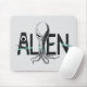 Transform your workspace with this unique mouse pad. Featuring the word 'ALIEN' in bold, creative typography, the standout detail is the letter 'I' – cleverly replaced by an octopus-like alien, adding a fun, extraterrestrial twist. Perfect for sci-fi lovers, gamers, or anyone looking to add a bit of intergalactic charm to their desk.