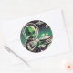 Space Alien with Birthday Cake UFO Flying Saucer Classic Round Sticker
