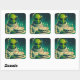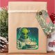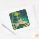 Space Alien with Birthday Cake UFO Flying Saucer Square Sticker