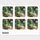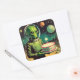 Space Alien with Birthday Cake UFO Flying Saucer Square Sticker