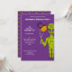 Throw an out-of-this-world birthday party with these custom invites featuring an illustration of a lime green space alien holding a pair of planet-shaped balloons.