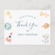 Thank your guests for celebrating the mama to be! This thank you postcard features watercolor illustrations of featuring a watercolor baby astronaut and space elements including planets, stars, a rocket and UFO. Personalise with your information or click "Click to customise further" to edit font styles, size and colours.