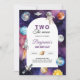 Fun space themed "Two the moon" birthday party invitation with watercolor space elements.