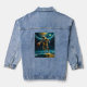 Space Basketball Astronaut Floating on Gold Tee Denim Jacket