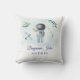 This magical throw pillow features imaginary astronaut in universe, moon, stars, aliens, ufo, space rocket, telescope, shooting star in blue galaxy and gold colorway.