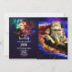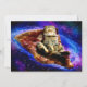 Space cat lying on a pizza invitation