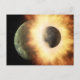This artist's concept shows a celestial body about the size of our moon slamming at great speed into a body the size of Mercury. NASA's Spitzer Space Telescope found evidence that a high-speed collision of this sort occurred a few thousand years ago around a young star, called HD 172555, still in the early stages of planet formation. The star is about 100 light-years from Earth. Image Courtesy: NASA/JPL-Caltech