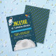 Invite friends and family to an out of this world Space Birthday invitation featuring a boy astronaut with a dark skin tone in space. This invitation also includes a patterned back side.