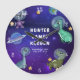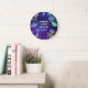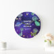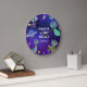 "Space Dinosaurs Galaxy Planets Stars Baby Nursery Large Clock." Cute adorable space dinosaurs with planets, stars and a colourful galaxy background. Adorable, whimsical and colourful nursery decor for your new baby! Name, date, weight and length (and anything else you might want to add) are easily customisable using the template fields provided. Graphically designed by internationally licensed artist and designer, Audrey Jeanne Roberts, copyright.